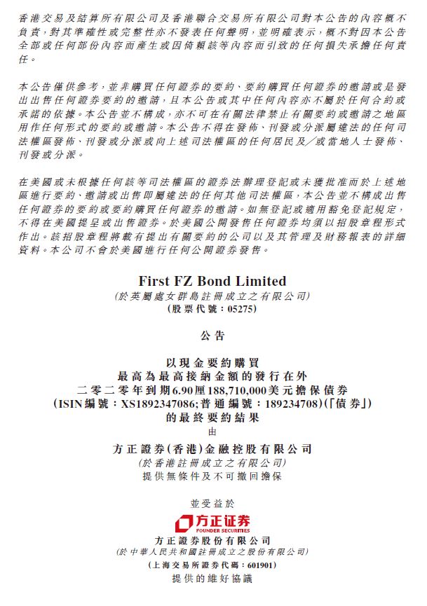 方正證券境外債回購(gòu)結(jié)果公告