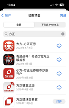 打開“App Store”,點擊右上角頭像進(jìn)入“賬戶”頁面,先在“賬戶”頁面下拉刷新,再點擊“已購項目”,在“全部”中搜索找到“方正環(huán)球交易寶”。若App有更新,則可以看到“更新”按鈕,點擊更新即可;若App已刪除,則可以看到“下載”按鈕,點擊則可下載重新安裝。